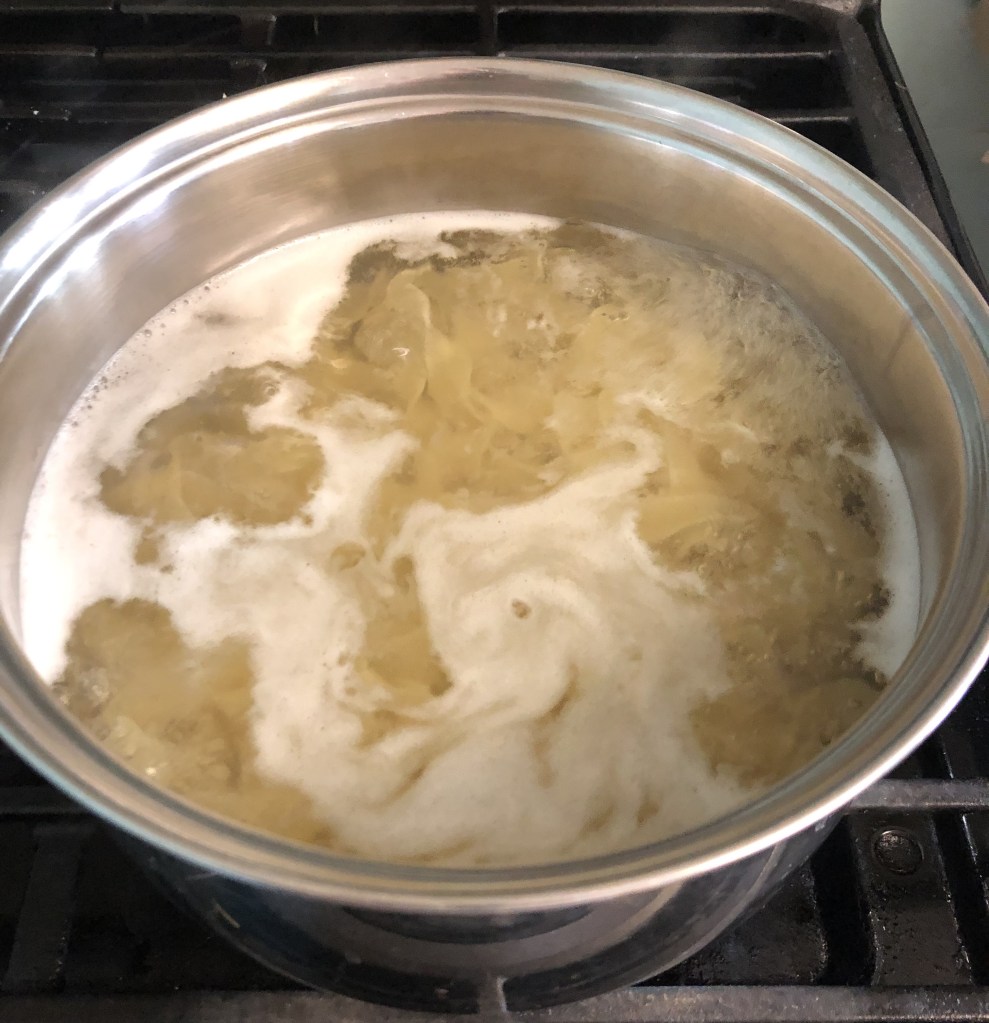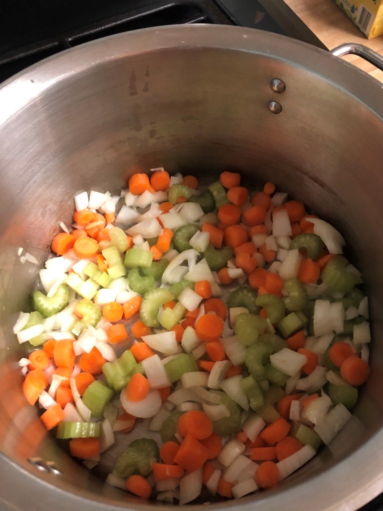 For the broth we used a 32 oz carton of chicken broth. We decided we needed more stock so we added 2 cups of water and 2 chicken bouillon cubes.