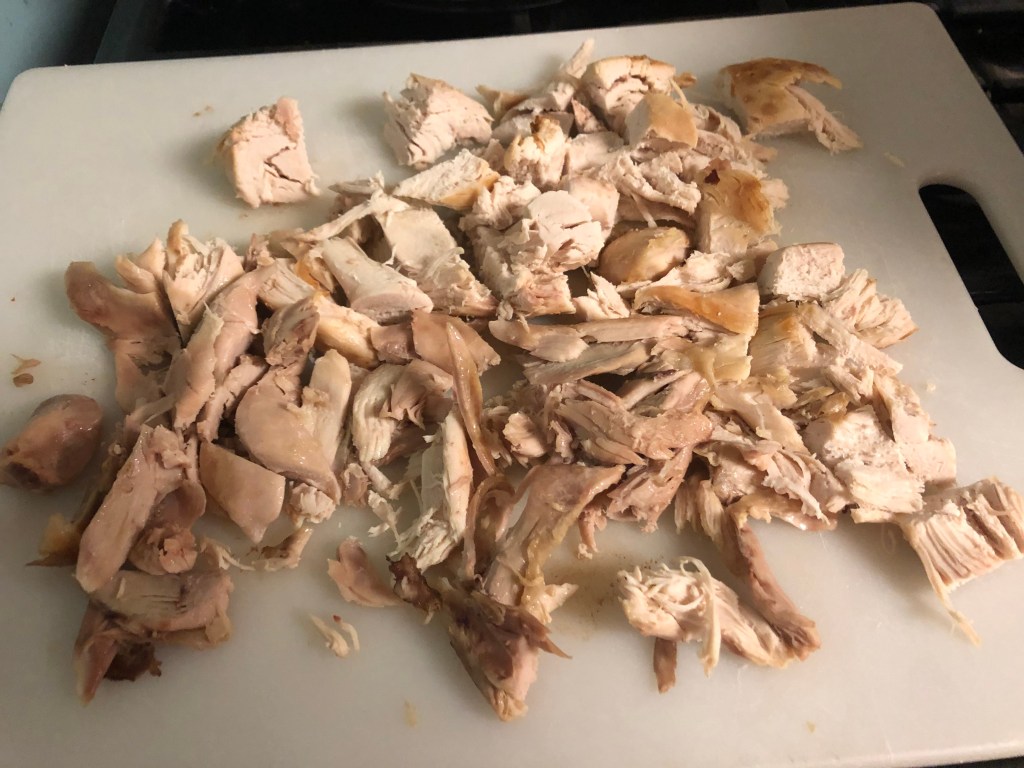 We used a rotisserie chicken (breast and thigh meat) as the recipe suggested in the notes.