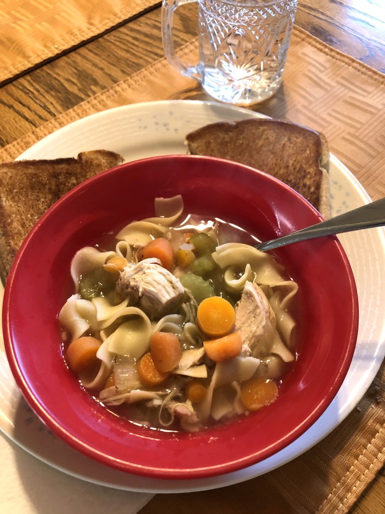It turned out to be really good chicken noodle soup. We ate ours with double grill cheese sandwiches.